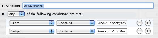 For this tutorial, I’ll explain how I set up a rule for when I receive a newsletter from Amazon.com. As a frequent product reviewer on Amazon, I receive a monthly newsletter of selected books, software, and sometimes even hardware that I can choose from to review. This Amazon newsletter doesn’t arrive on the same date each month, so I have Mail notify me when Amazon sends it. This rule would also work for say Ebay, Paypal, and banking account email notices.
