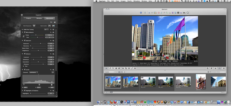 Using a second monitor for working in Photoshop and Aperture 2.0 has also resulted in a productivity boost. I can open tool panels in both applications, slide them over to the second screen, which means I have slightly more display room for images I’m working on, on my main monitor.